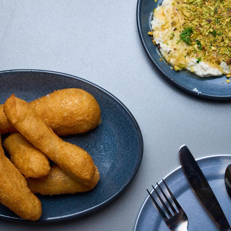 Hand whipped ricotta, toasted pistachio, citrus honey, fried pizza dough.